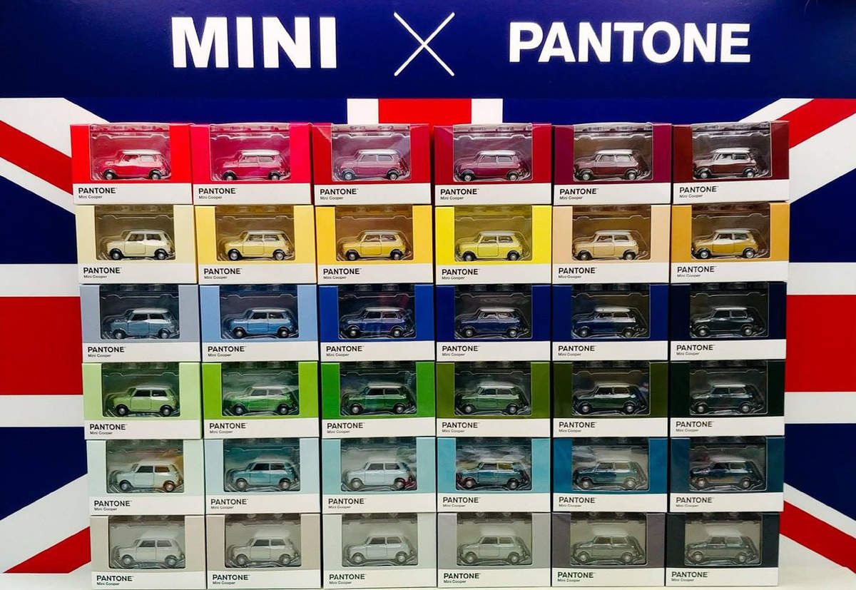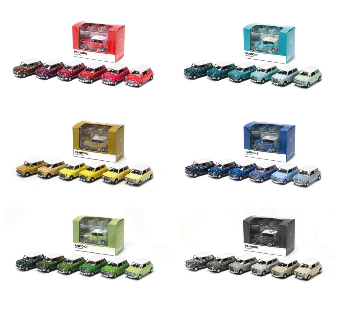 Les nuanciers Pantone permettent de connaître des nuances exactes de peinture. Tiny, un fabricant hongkongais, a réalisé un ensemble de 36 Mini de première génération pour célébrer les 60 ans de la Mini. Sur le thème Pantone, on découvre ainsi une large palette colorée de ces Mini. Ces dernières sont à l'échelle 1/50, une échelle assez peu collectionnée, malheureusement. Ces Mini sont présentées chacune dans des boîtes colorées et empilables. Point fort : les finitions semblent très correctes, avec de beaux niveaux de détails. Incontestablement, tout passionné de Mini devra faire de sérieux efforts pour ne pas craquer... Il n'est cependant pas possible d'acquérir ces Mini à l'unité, c'est le lot entier exclusivement.